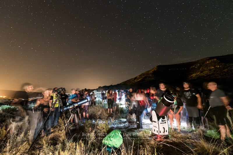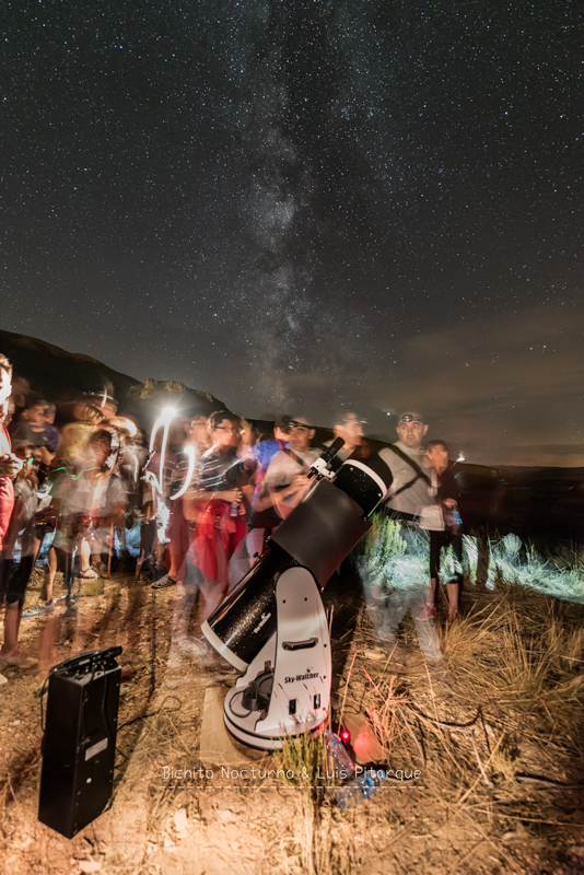 Una vez en faena, y tras una presentación de Juan Carlos, cedió la palabra a fernando Ruiz, todo un don de gentes para hacernos callar a todos y escuchar sus explicaciones en una muestra del cielo en una magnífica noche de luna nueva. Ah!!! y tuvimos una grata visita sin avisar, apareció Pedro Blesa, monitor de Star Light, y gran fotógrafo nocturno, que alegría, además de los más de 120 asistentes al evento que acudieron al final.Muy participativos en las indicaciones de Fernando, y es que ninguno se quedó, sin mirar Saturno ni Júpiter, por muy rezagado que fuera, siempre se le atendía y se le volvía a ajustar el telescopio.En estas imágenes se puede apreciar el interés general de los asistentes.
